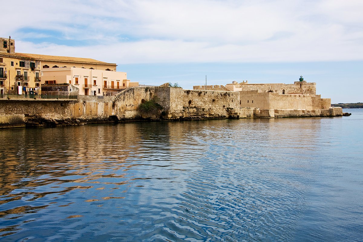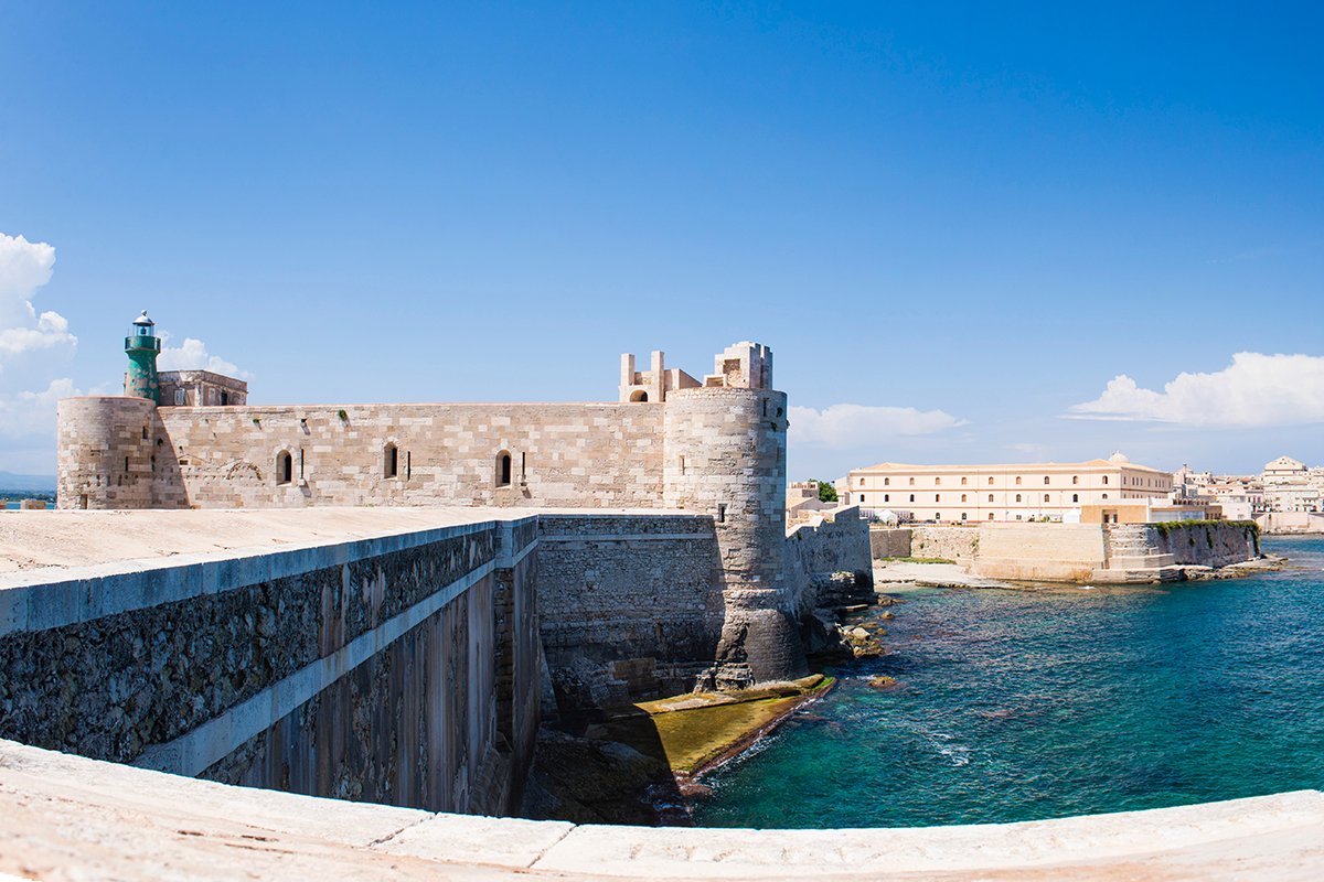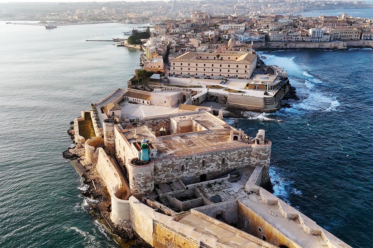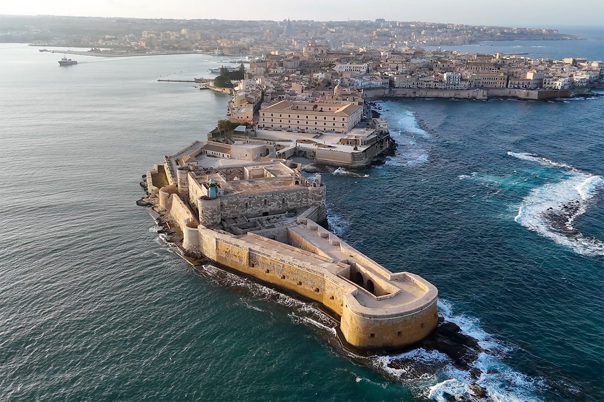 🎭 Famous For: Frederick II’s sea fortress, commanding Ortigia’s harbor, ornate marble portal, and the 1298 siege during the War of the Sicilian Vespers