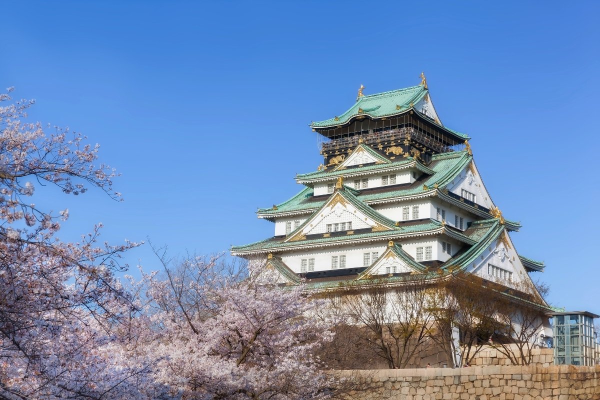🎭 Famous For: Siege of Osaka (1614–1615), five-story keep with eight internal floors, vast moats and sheer stone walls, golden shachi ornaments, panoramic views, cherry blossom hanami