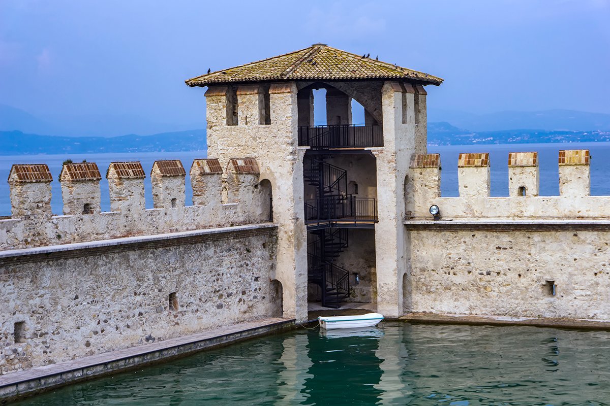 Raised in the 13th century after Mastino I della Scala secured Sirmione, the Sirmione Castle (Castello Scaligero) became a linchpin of Scaliger control over Lake Garda—part fortress, part noble seat. Its swallowtail battlements and a keep rising above lake-fed moats made it a rare true water castle. When Venice took over after the Scaligers’ fall, engineers strengthened the complex and enclosed a crenellated harbor to shelter their fleet—the only surviving fortified port of its kind in Italy. The stronghold’s military role faded in the 16th century with the rise of nearby Peschiera del Garda. Restorations after World War I and conservation completed in 2018 revived its austere lines, opening ramparts and the tower to visitors and preserving the remarkable medieval harbor.