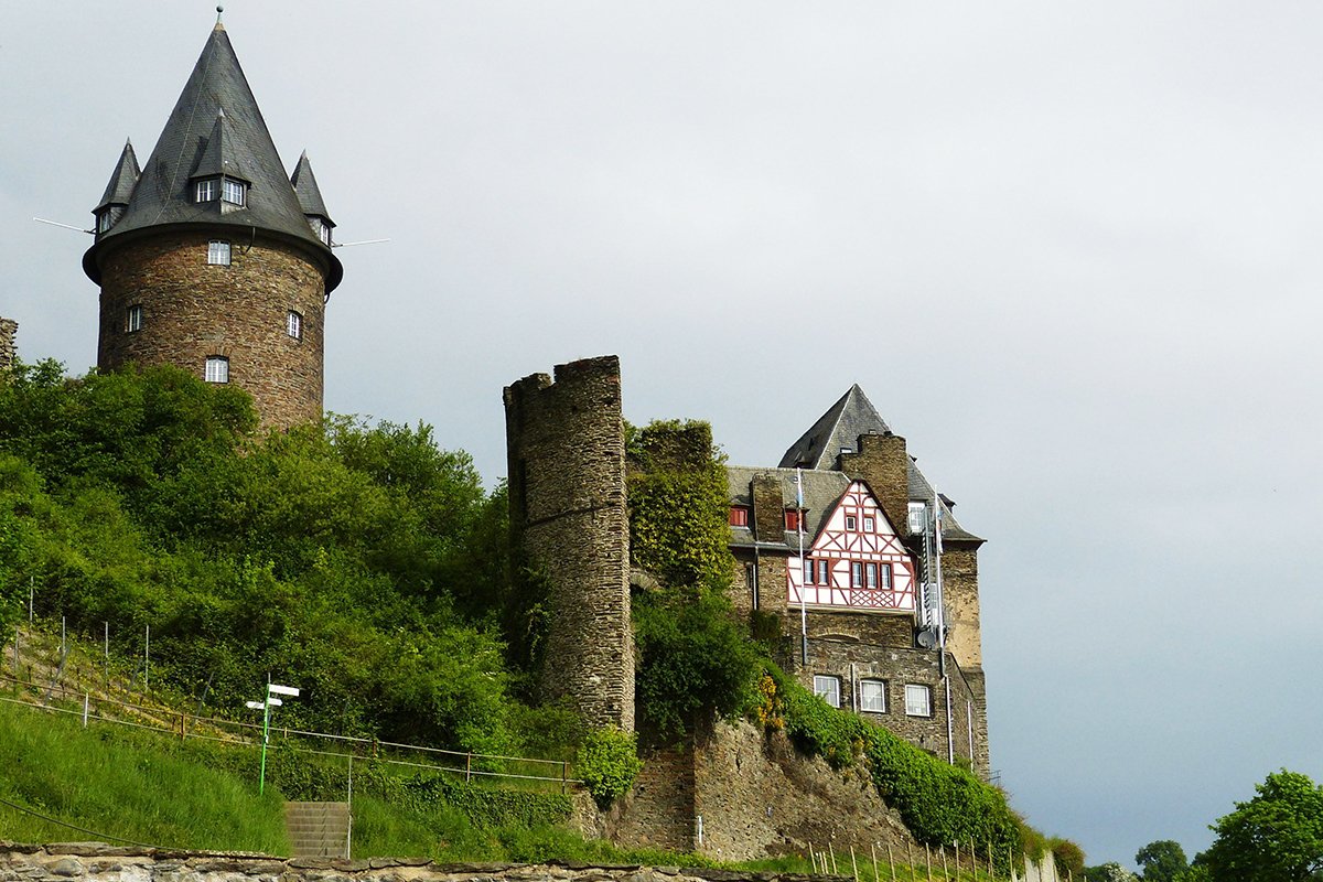 Raised around 1100 by the Archbishop of Cologne, Stahleck Castle controlled the Rhine’s lifeline and projected ecclesiastical power. It later passed to the Counts Palatine, who strengthened it in the 13th century with a round Romanesque keep, a formidable shield wall, and—unusual for Germany—a water-filled moat. The castle staged high politics: in 1400, Rupert celebrated his election as King of Germany here and hosted the Empire’s Electors in 1408. War repeatedly found Stahleck; it was besieged in the Thirty Years’ War and ultimately blown up by French forces in 1689. Between 1925 and 1927, careful reconstruction revived its silhouette. Today, its storied walls house one of Germany’s most attractive youth hostels.