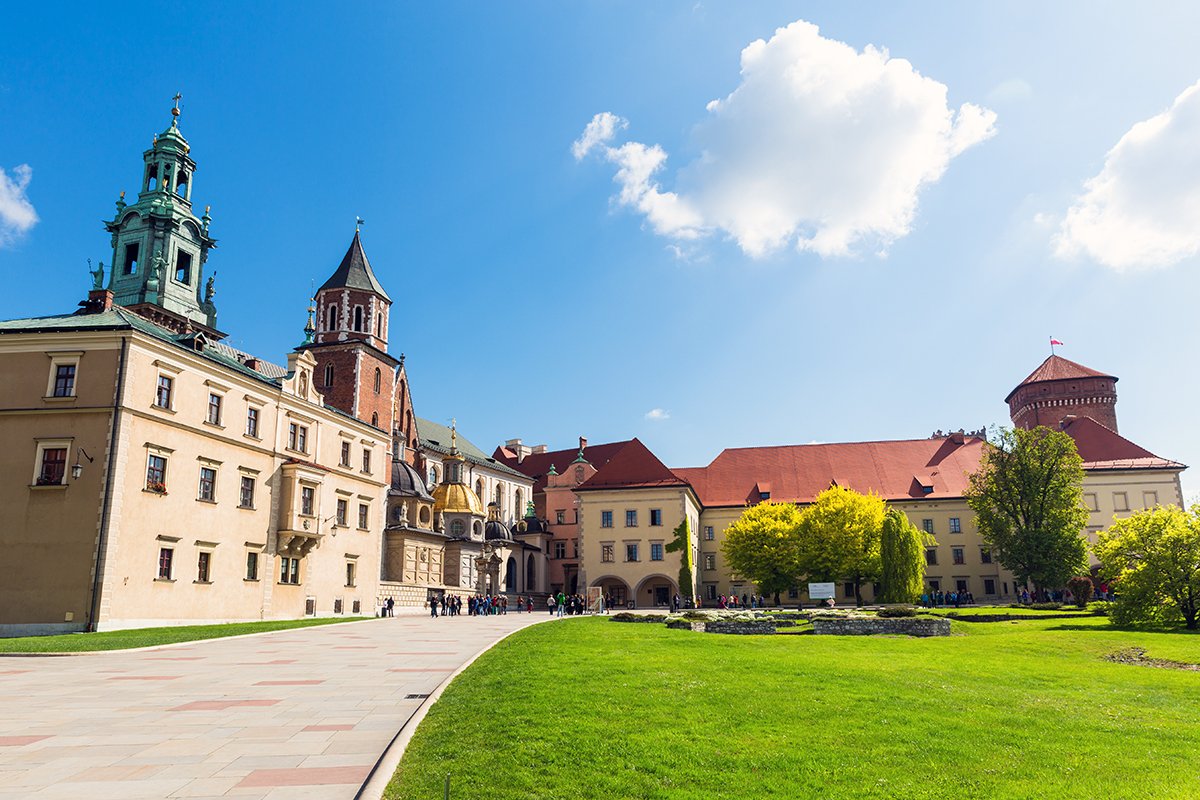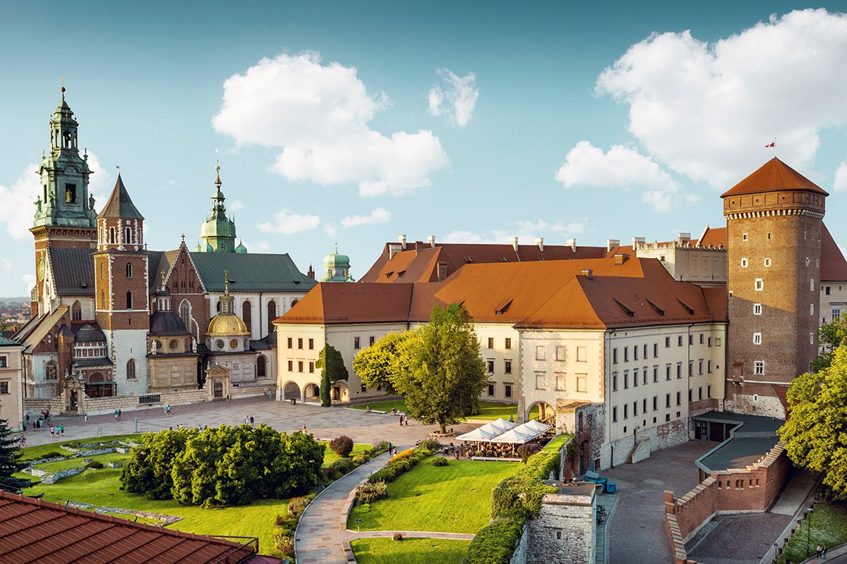 🎭 Famous For: Poland’s royal seat; coronations and state ceremonies; royal tombs in Wawel Cathedral; Renaissance arcaded courtyard; Crown Treasury & Armory; the Sigismund Bell; the Wawel Dragon legend.